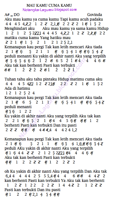 Not Angka Pianika Lagu Govinda Mau Kamu Cuma Kamu Pianika